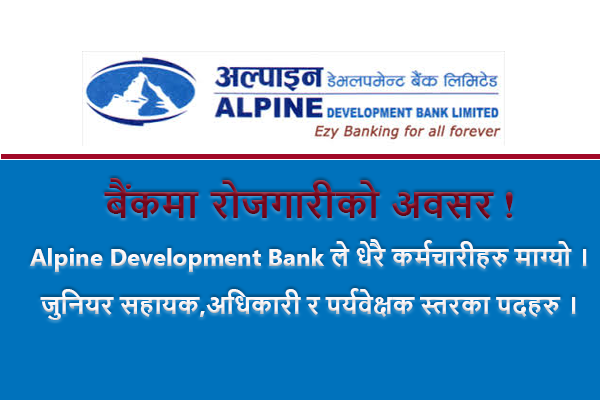 Alpine Development Bank, a constantly growing regional level development in Nepal is looking fo...